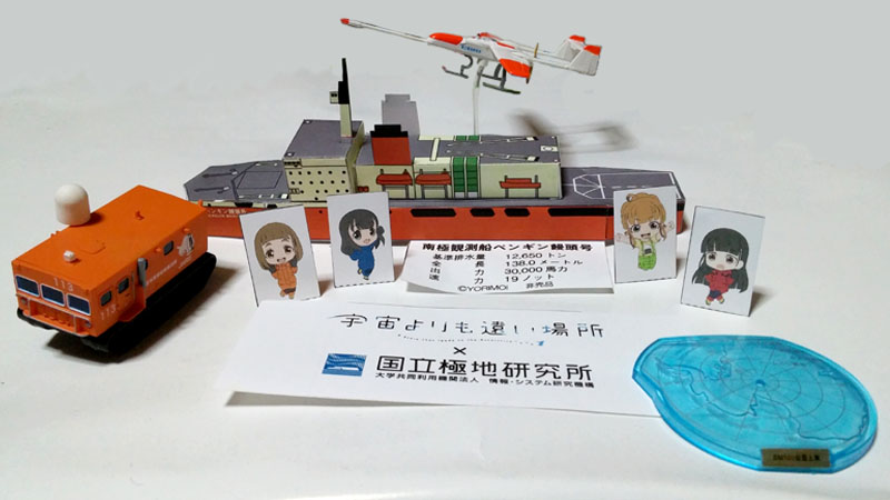 非売品の全員プレゼントの"ペンギン饅頭号ペーパークラフト"と常設の南極・北極科学館のガチャガチャの"雪上車"と"無人機"。