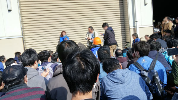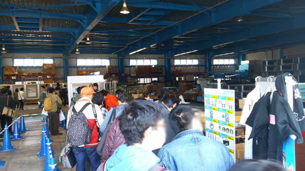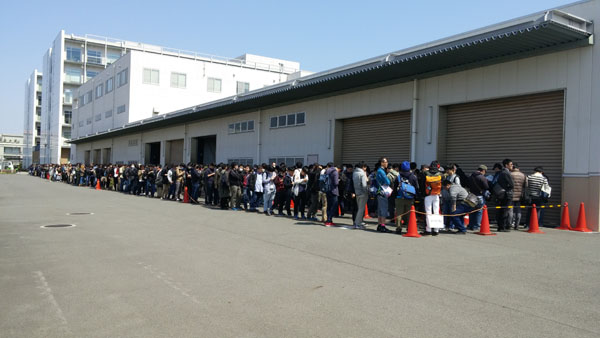 物販の列。行列の目当てはコレ。先行販売で一部のグッズ以外は4月から各所でも販売開始されますが。