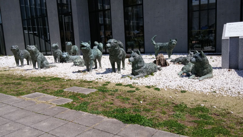 タロ、ジロなどカラフト犬の銅像。昔は東京タワーの下にありました。