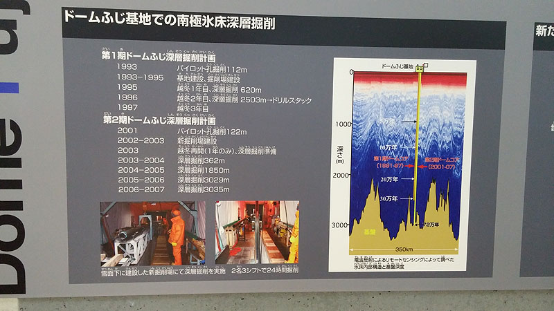 上のドリルが思ってたよりスゴくて、富士山の高さな3000mの深さまで到達して34万年前の氷を持ってくる、とかいう