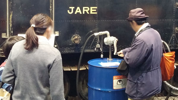 オイルのポンプは手回し式。アニメでも報瀬がやってました。さわって回せます。