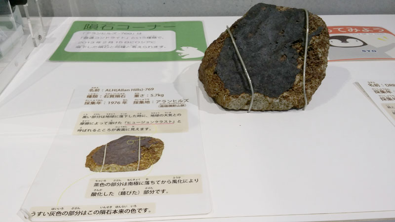 南極の隕石。黒いトコは大気圏突入の摩擦で溶けたトコ。さわれます。