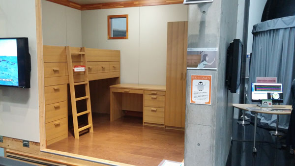靴脱いで中に入れます。ベットは意外と低いです。下は物置き場だし。