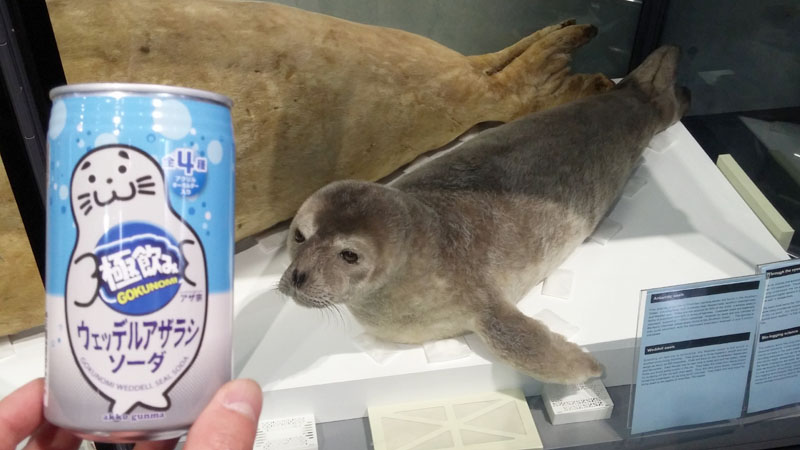 ウェッデルアザラシの幼態と「よりもい」グッズのウェッデルアザラシソーダー缶