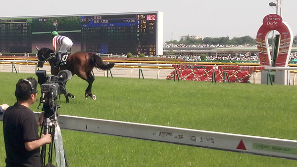 15:30スタートの第10レース、東京優駿・日本ダービー(G1)が始まる20分前、ゴールそば・最前2列目からグルリと一周。