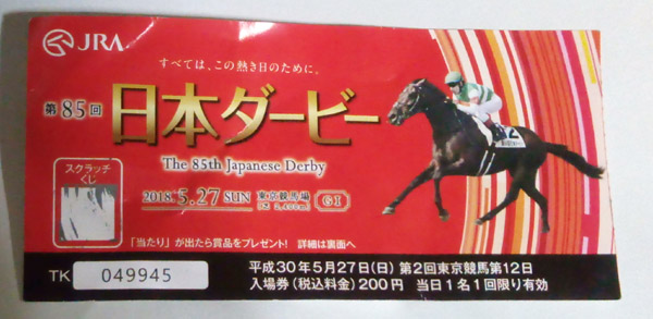 日本ダービー、初めて競馬場で馬券を買いました、レポ。