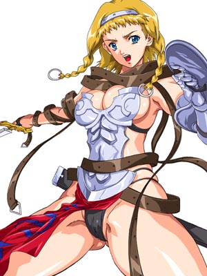 女戦士物としてお約束の半脱ぎアーマーブレイクやヒロインピンチ。