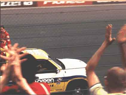 | 近いんデス。 この車は 違う車ですけど 走ってる ラインはまったく同じ位置です。 (メインスタンド 最前列から ビクトリーラン時) |