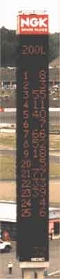 リーダーボード 私のような 実況が届かないところの 観戦者には 唯一のレース全体状況把握の手段です。 最上段が Lap数(周回数) ひとつおいて 以下 左にトータル順位の数字 右にカーbナす。 ちなみにカーbヘ 当然車体にも 明記されてますが 他にも 会場で配られていた 無料パンフで確認できます。 下位の下半分は 定期的に 表示がうつりかわります。 でっかい オーロラビジョンもあるのですが 双眼鏡 家に忘れちゃったんで… (レース終了時のもの つわものどもの夢の跡 日本人の戦績です。) |