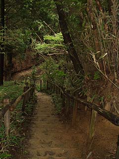 ![]() 雨もやんだし、山も慣れたので黙々と山を下りる。 階段が多い〜。膝にきます。 |