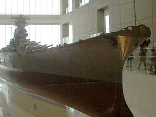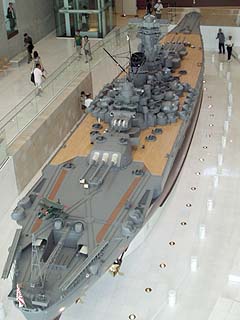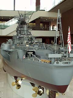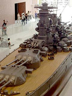 ![]() 「大和ミュージアム」の1/10スケール大和後期型 逆光になって写真はイマイチか。 |