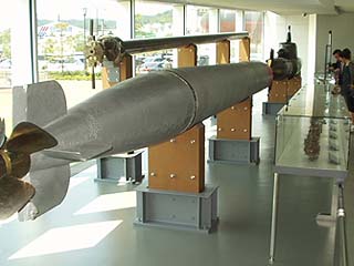 ![]() 九三式魚雷 帝国海軍の秘密兵器の酸素魚雷。 雷速50ノットで射程20,000m、炸薬500kgは ゼロ戦の圧倒的な航続力と同じで アウトレンジ攻撃が可能だが レーダーの開発により出番が無くなる。 |