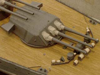 ![]() 15.5センチ3連装副砲 艦橋の前後に計6門。 |