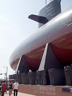 ![]() 実働していた"あきしお"を陸揚げして展示。 76m。ジャンボジェット並にデカイ。 非現実的なバカみたいな画ですが、実際もそうでした。 |