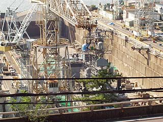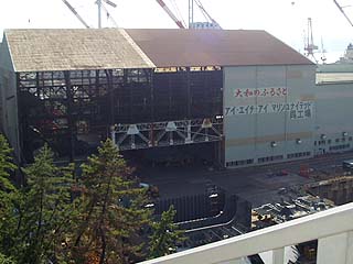 ![]() 隣では海自の護衛艦が補修整備中。 |