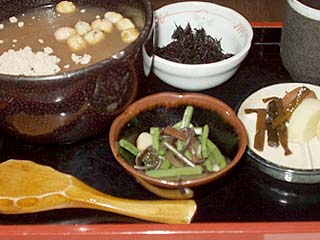 ![]() お昼は大和の茶がゆ。 烏龍茶漬けから塩気が抜けたような 斑鳩の質素を思わす素朴な味。 添え物と一緒に食べると美味しい。 浮いてるのは揚げ玉ときな粉。 |