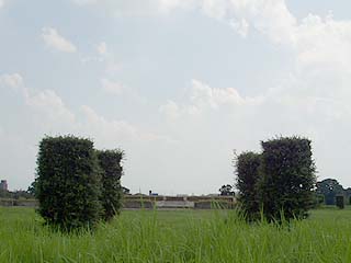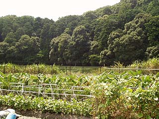 ![]() 平地に突如ある雑木林や裏山は 奈良では大抵古墳。水で囲ってあるので分かります。 写真は前方後円墳のくびれ部分。 |