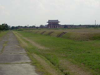 ![]() 右の人と比べると分かるけど、やたら高い壁は6m。 朱雀大路の幅は70m。 |