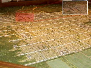 ![]() 平城京模型。 平城宮は赤い部分だけか。 |