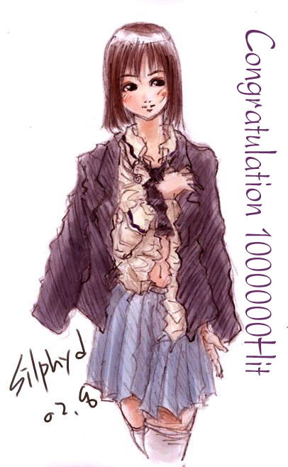 韓国のsilphydさんからCOU100万ヒット突破のお祝いの絵をいただきました。 夏ももう終わり、夏服を衣替えし ブレザーの似合う秋ももうすぐでしょうか。 制服のブラウスがはだけて密におへそがのぞいてるのは この絵のチャームポイントかな。 個人的にはストッキングの食い込み具合がツボなんですけど。 ありがとうございました。