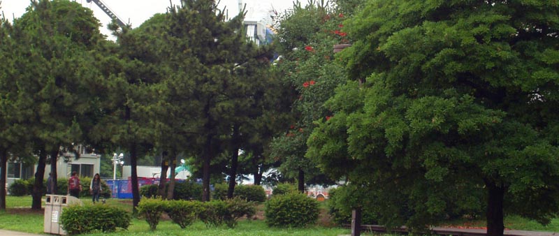 人が足で踏みしめすぎて芝が剥げて、埋立地特有のヘドロっぽい臭いがちょっと…。