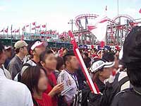 最終日は予定がつまってるので、すぐブースめぐり。 外人さんはあまり多くないですね。5%くらい。 2002サッカーW杯の決勝、新横浜の方が ずっと多かったですね。 F1グッズで身を固めた人や家族づれ。 カップルや女性同士も多く、女性客は2割くらいはいたでしょうか。 |