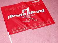 早起きの狙いはコレ。 昨日貰えなかったホンダの無料配布グッズ。 念願叶いゲットです。フラッグの他 ウチワとかステッカーとか入ってました。 1/10の確率で大フラッグが当たったそうですが、残念ながら外れ。 |